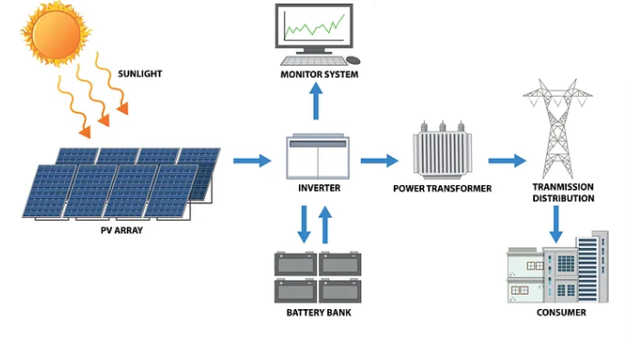 • Grid Connection :Set up the infrastructure to connect the plant to the power grid, including substations and transmission lines.